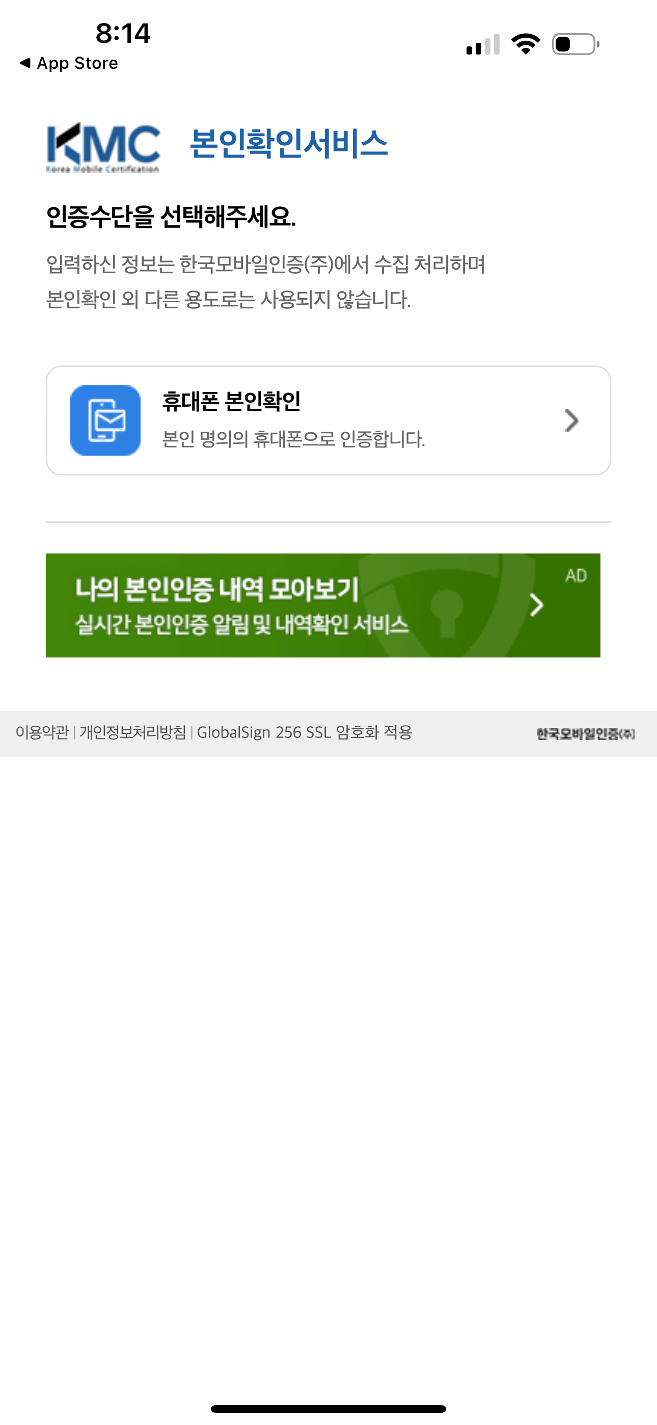 5. 휴대폰인증과 금융인증서 인증 중에 휴대폰 인증으로 편하게 선택해 줍니다.