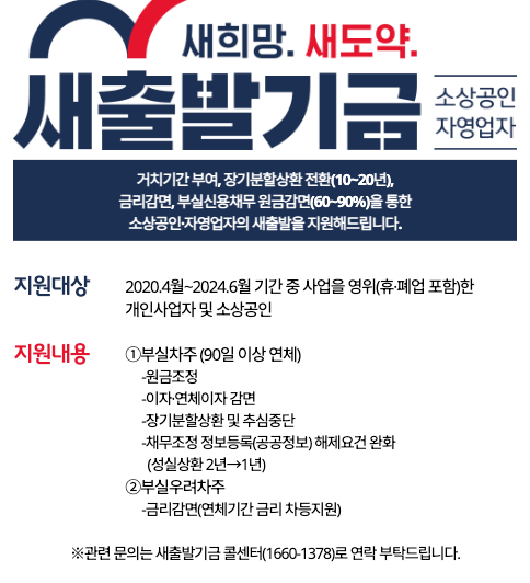 새출발기금은 코로나19로 어려움을 겪게 되신 자영업자와 소상공인들에게 새로운 희망의 기회를 제공합니다. 경제적 어려움을 겪고 계시다면 바로 신청해 보세요.