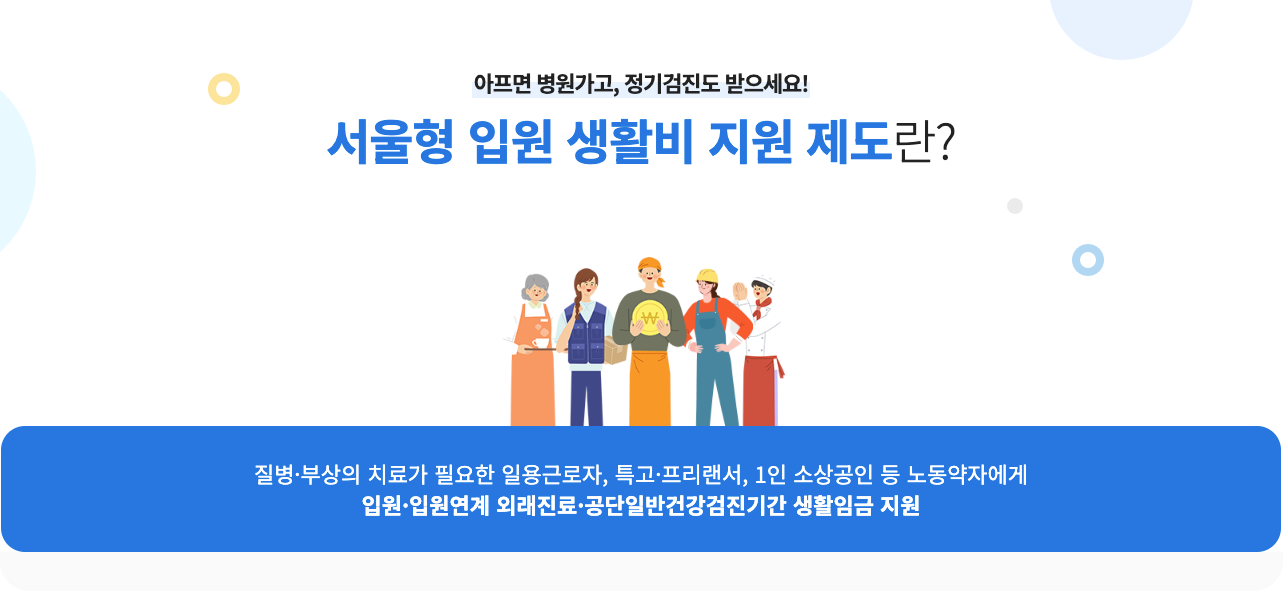 서울시는 질병이나 부상으로 입원 치료가 필요한 일용근로자, 특수고용직 프리랜서, 1인 소상공인 등 경제적으로 취약한 노동자들을 지원하기 위해 이 사업을 운영하고 있습니다.