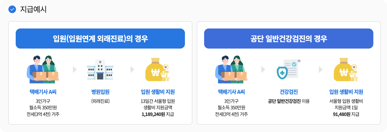 그래서 서울시는 이들을 돕기 위해 하루 91,480원의 생활비를 지원함으로써 경제적 어려움을 줄이고, 보다 안정된 치료와 건강검진을 받을 수 있도록 돕고자 시행하고 있는 정부 정책입니다.