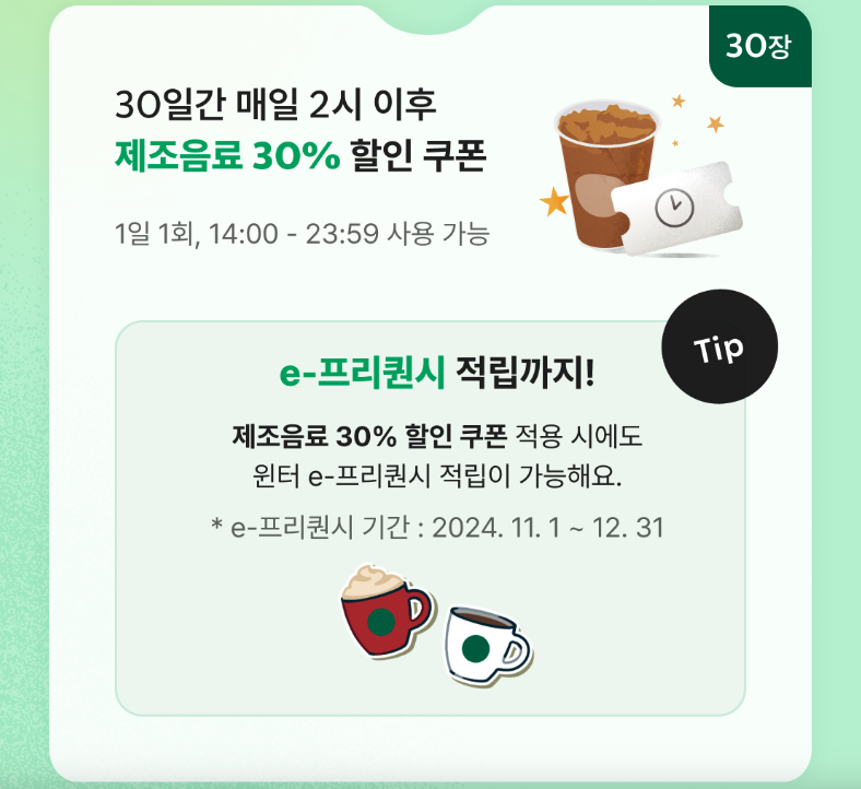 이 모든 혜택을 통해 스타벅스에서 좀더 저렴한 가격에 커피를 즐기실 수 있습니다.