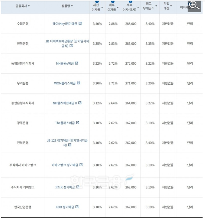 1. 수협은행 ‘헤이(Hey)정기예금’ – 기본 금리 최고 연 3.40%