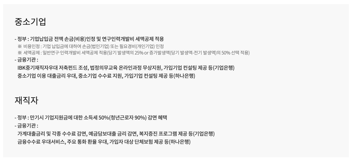 - 가입대상: 중소기업 재직자(나이 및 연봉 제한 없음)