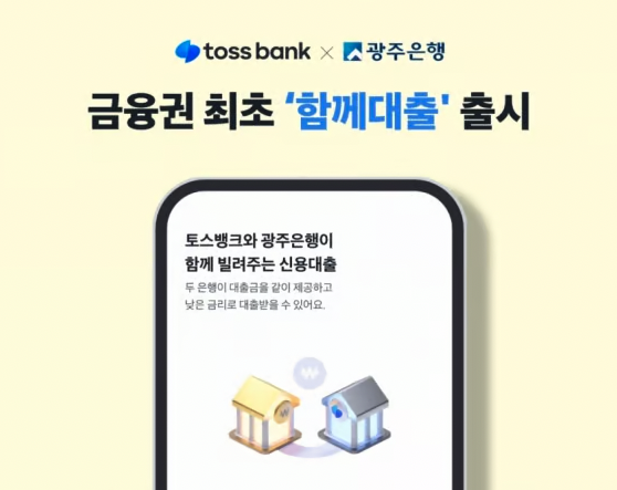 토스뱅크와 광주은행이 협력하여 함께대출 이라는 상품을 출시하였는데, 최근 금융권에 혁신적인 대출 상품이라고 해서 알아보겠습니다. 이 상품은 두 은행이 자금을 절반씩 부담하면서 보다 낮은 금리와 합리적인 조건을 제공합니다.