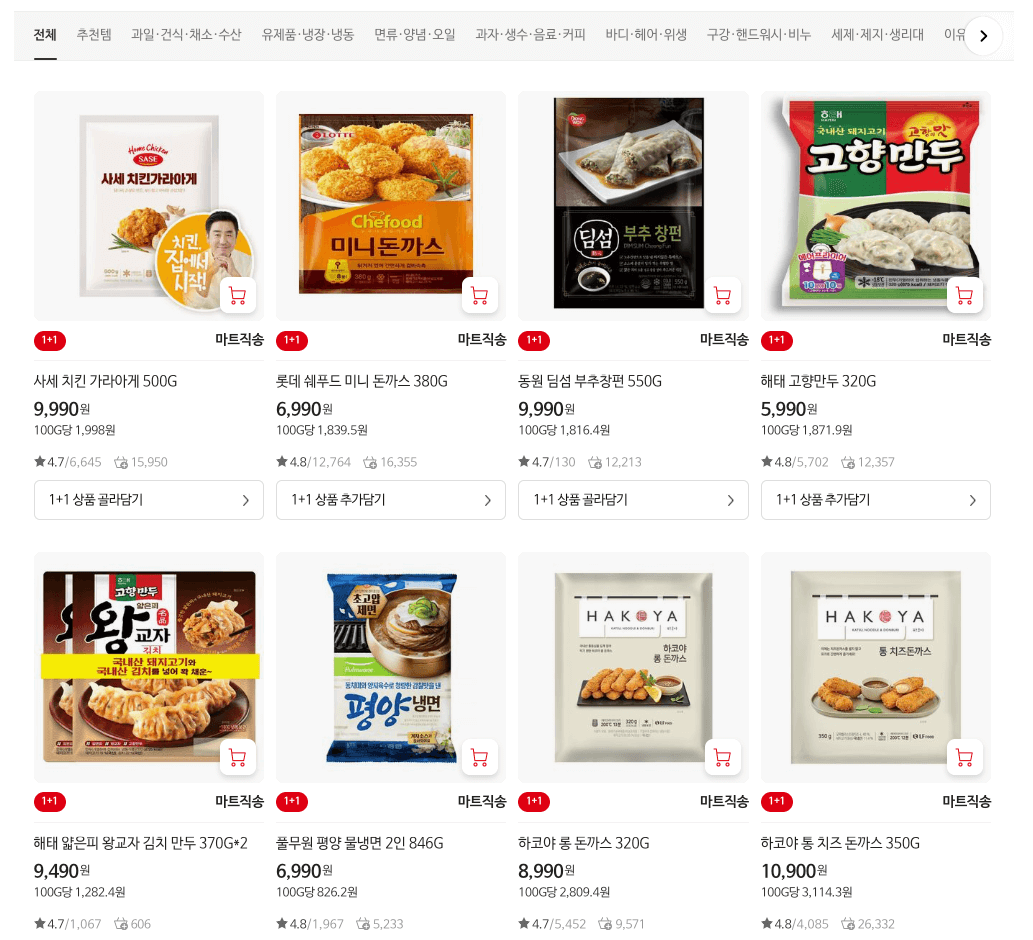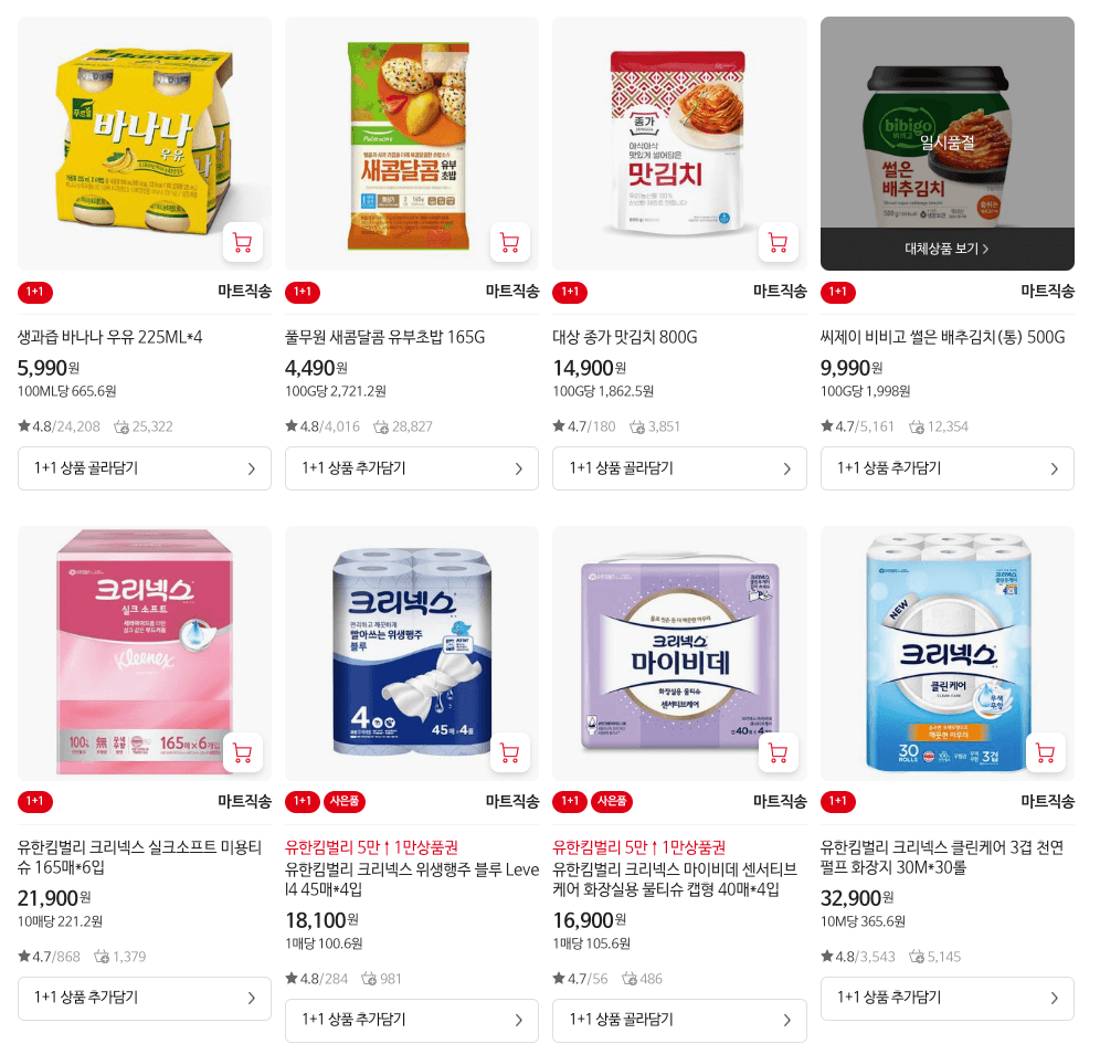 매주 아니면 자주 상품군들은 바뀌는 모양새입니다. 제가 매주 쇼핑하진 않기에 확신할 순 없으나 제가 일주 이주일 텀으로 쇼핑할 때마다 상품은 바뀌어져 있었어요.