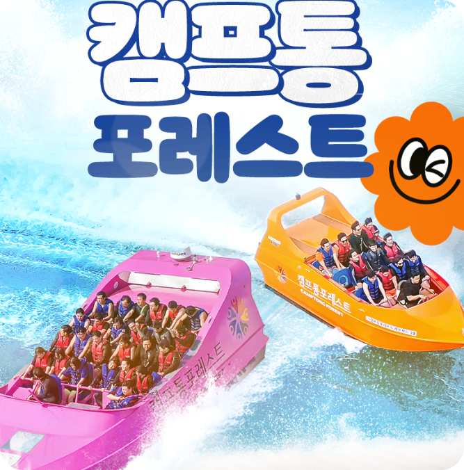 캠프통포레스트에서도 수상레저 이용권 및 숙박 패키지를 판매하고 있습니다.