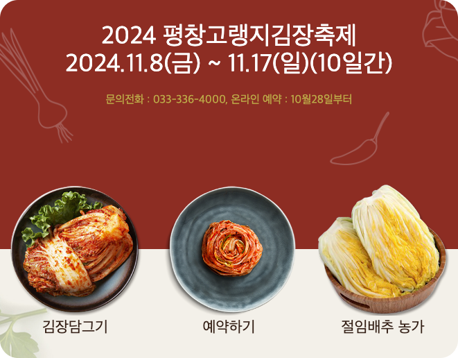 김치는 한국인의 소중한 음식 문화 중 하나입니다. 특히, 김장철이 다가오면 많은 가정에서 김장 준비로 바빠지는 시기인데요, 하지만 현대 사회에서는 직접 김장을 담그는 일이 점점 줄어들고 있는 추세입니다. 그런 의미에서 2024 평창 고랭지 김장축제는 가족과 함께 김장 문화를 체험하고, 맛있는 김치를 담글 수 있는 기회를 제공합니다.