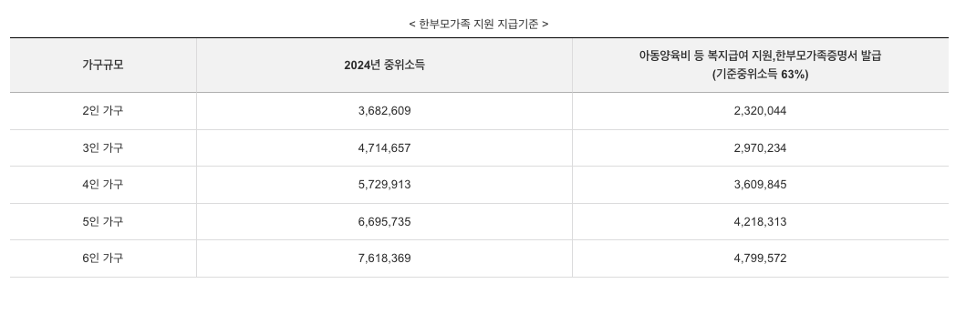 *한부모가족증명서 발급 및 복지급여 지급(기준 중위소득 63% 이하)