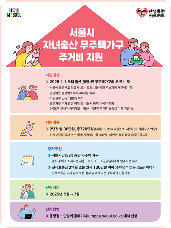 ✅ 신청자(부 또는 모) 서울시 거주 & 자녀 서울 출생 신고 완료