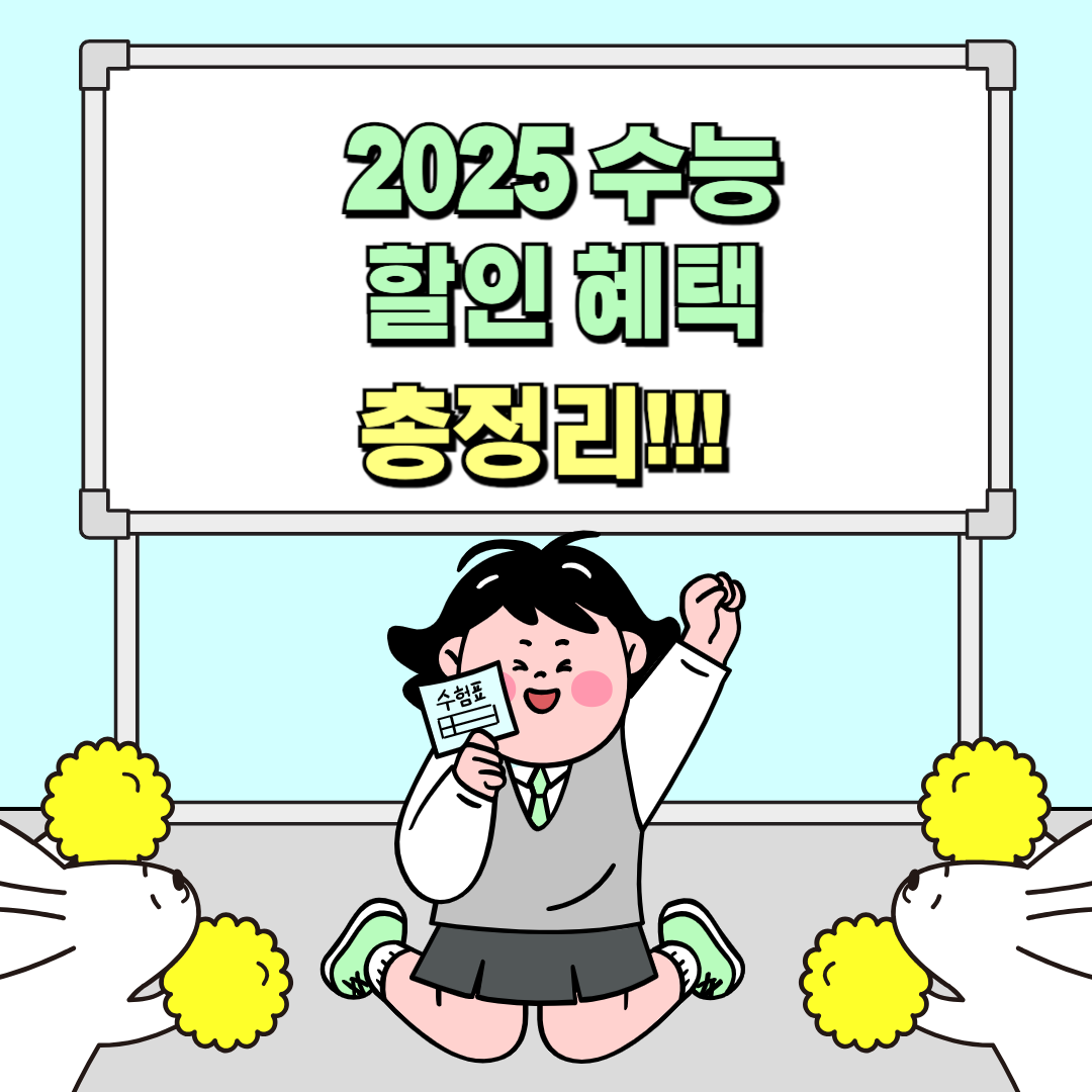 2025학년도 대학수학능력시험(수능) 수험생 혜택 안내 2025학년도 대학수학능력시험(수능)이 11월 14일(목)에 실시됩니다. 수험생 여러분의 그간의 노력이 좋은 결과로 이어지길 바라며, 수능 이후 다양한 할인 혜택을 통해 그동안의 고생을 보상받을 기회를 소개하고자 합니다. 이번 포스팅에서는 수험표를 통해 누릴 수 있는 여러 혜택을 정리해 보았습니다.
